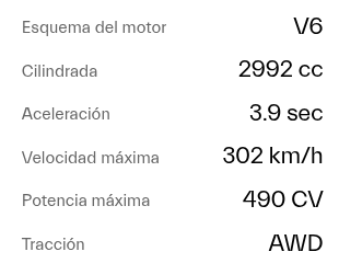 De 0 a 100 km/h en 3,9 segundos y una velocidad máxima de 302 km/h.